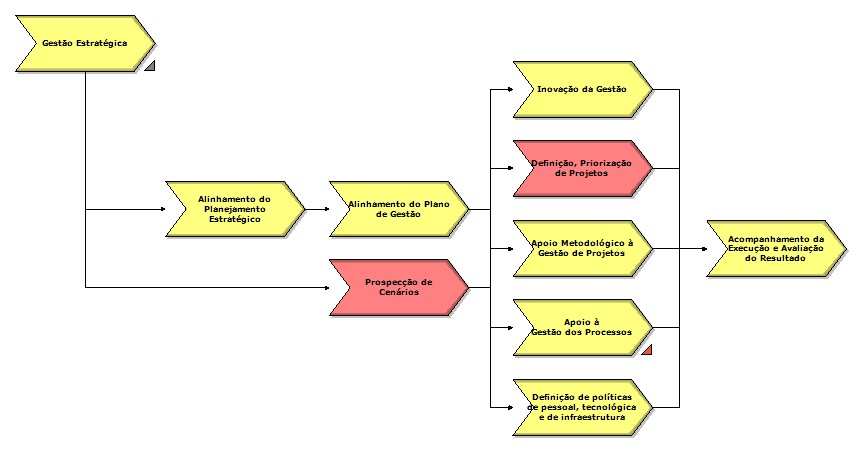 Inicia com coleta de indicadores e termina com propostas de melhorias. Abrir subnível Abrange os processos envolvidos na viabilização de um modelo de gestão. Inicia com o realinhamento do planejamento estratégico e termina com o Acompanhamento da Execução e Avaliação do Resultado. Abrange as atividades necessárias ao fomento das novas ferramentas de gestão.